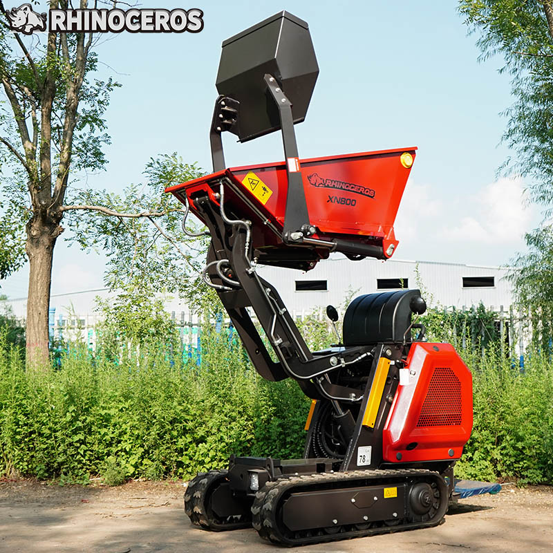 The RH800 Mini Dumper is a high-capacity, heavy-duty tracked transporter designed for professional use in construction, landscaping, and agriculture. With its unique L-shaped structural design, it provides outstanding lifting stability and smooth operation — making it one of the most reliable dumpers in its class.